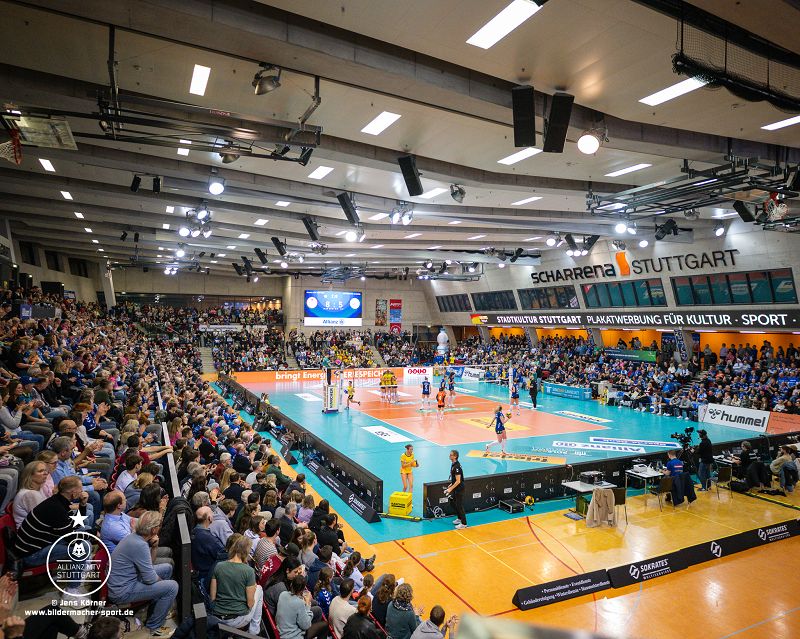 Der Tabellenführer Allianz MTV Stuttgart blieb in dieser Saison weiterhin ungeschlagen und dominierte das Topspiel gegen den Tabellenzweiten aus Schwerin. Am Ende stand wieder ein 3:0 Erfolg in der ausverkauften SCHARRena und 30 Punkte auf dem Konto. Besonderer Höhepunkt: die MVP Ehrung durch den Sportler des Jahres, Weltmeister und Olympiazweiten Leo Neugebauer.