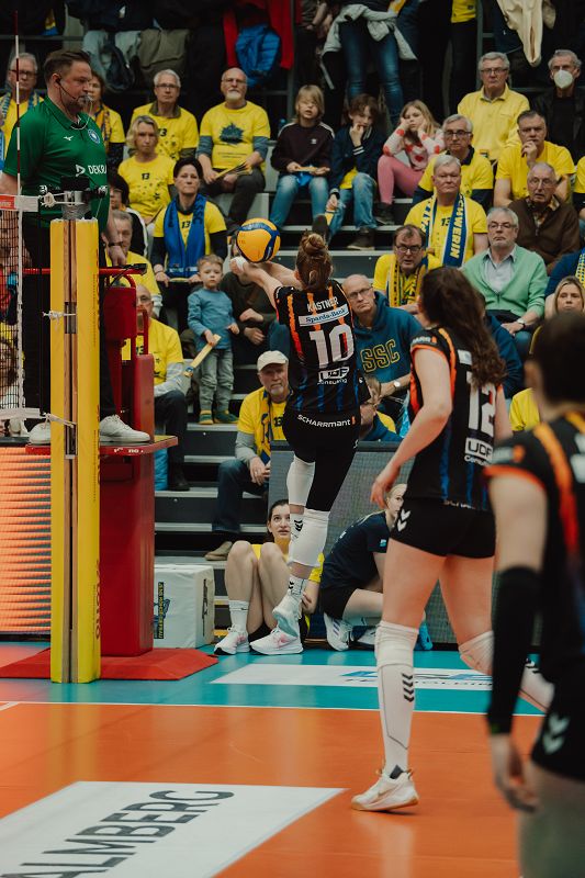 Doch Stuttgart reagierte eindrucksvoll. Im vierten Satz übernahm Allianz MTV früh die Kontrolle und setzte Schwerin vor allem mit starken Aufschlägen und effektiven Blocks unter Druck. Der SSC fand kaum noch Lösungen im Angriff, während Stuttgart Punkt um Punkt davonzog. Am Ende entschieden die Gäste den Satz deutlich mit 25:12 und erzwangen damit den Tiebreak.
