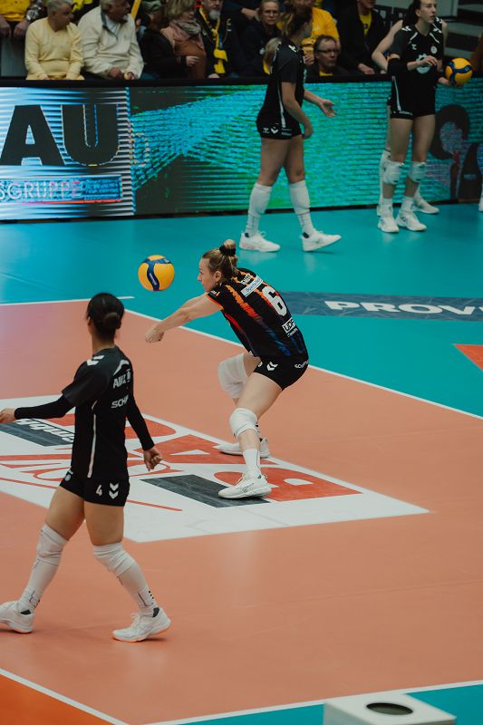 Der dritte Satz entwickelte sich erneut zu einem intensiven Schlagabtausch. Schwerin zeigte Moral und konnte sich durch druckvolle Angriffe und eine konzentrierte Feldabwehr erneut Vorteile erarbeiten. Die Gastgeberinnen setzten sich schließlich mit 25:21 durch und gingen wieder mit 2:1 Sätzen in Führung.