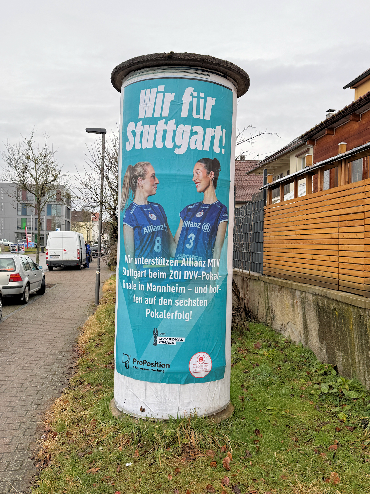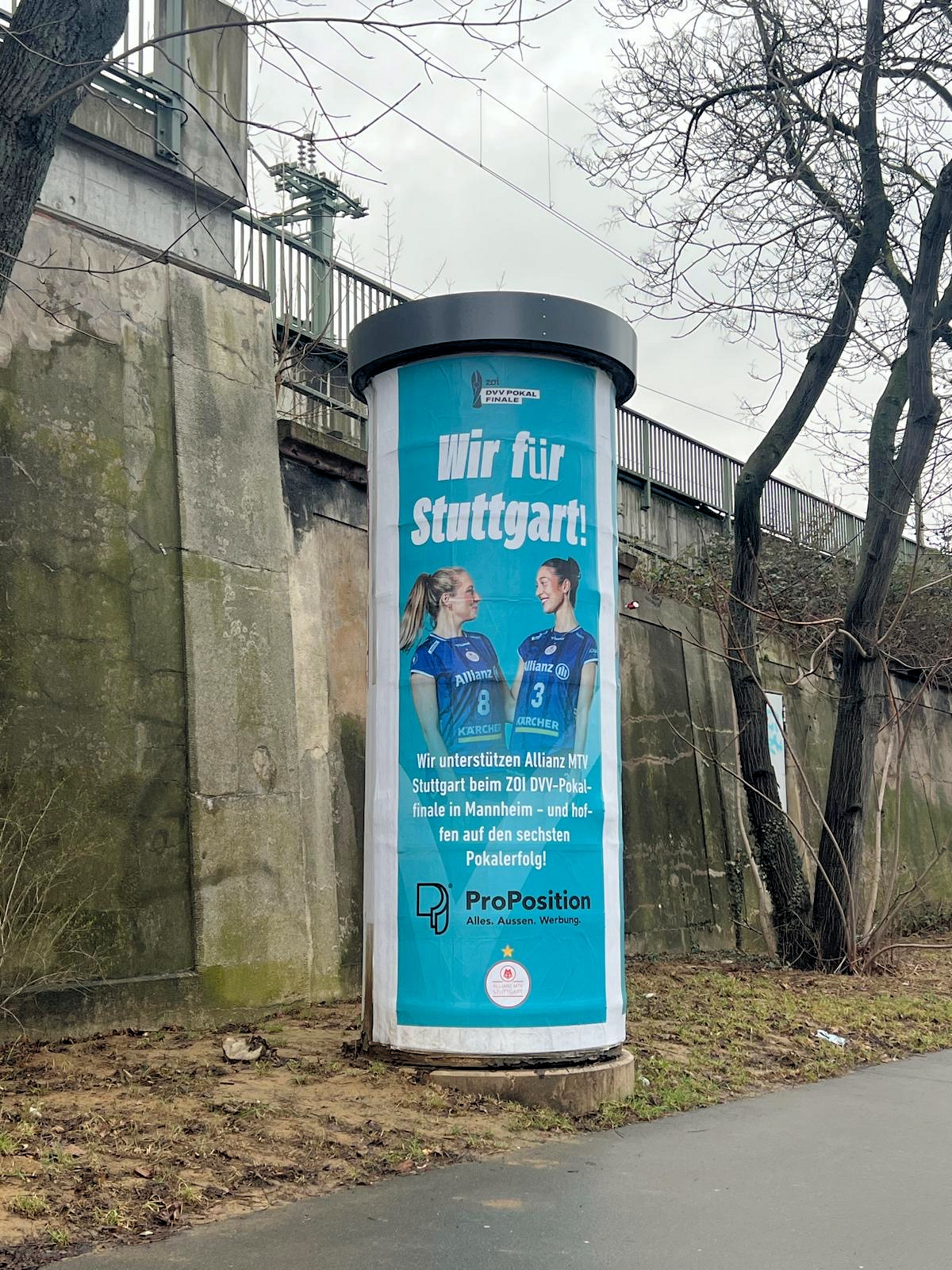 ProPosition ist Partner von Stuttgarts schönstem Sport und bewirbt seit einigen Jahren auf Großflächen und Ganzsäulen die Heimspiele von Allianz MTV Stuttgart in der SCHARRena. Darüber hinaus zu speziellen Anlässen wie den Spielen im CEV Cup, der CEV Champions League oder im Sparda-Bank Supercup - und auch wenn der mehrfache Deutsche Meister, Supercup- und Pokalsieger zum Pokalfinale nach Mannheim reist. So auch in diesem Jahr mit einer eigenen Kampagne unter dem Motto: "Mach´s noch einmal, Stuttgart!" an über 150 Stellen in Stuttgart und der Region.